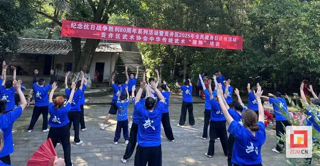 近日,由贡井区教体局指导、贡井区武术协会主办的纪念抗日战争胜利80周年系列活动之中华传统武术“醒狮”培训开班仪式,在贡井区张家花园举行,吸引了60余名武术爱好者参与,培训将持续半个月时间。