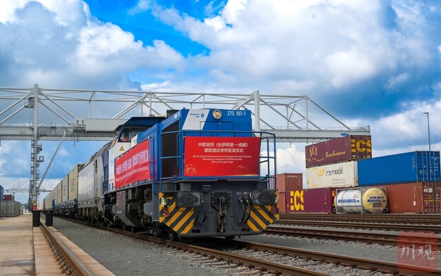 当地时间7月7日,中欧班列(杜伊斯堡-成都)蓉欧速达专列首发仪式在德国杜伊斯堡港举行。