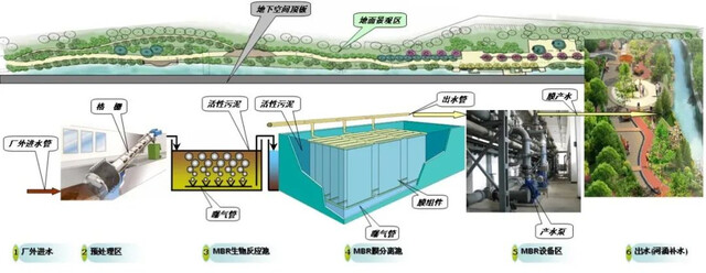 污水的重生经历了一套精密复杂的“净化流水线”:进厂污水、进水调流井,粗、细格栅、曝气沉砂池、膜格栅,水解酸化池,生化池,MBR膜池,臭氧催化氧化池,人工湿地,紫外线消毒,达标排放。