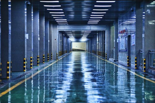 穿过湿地公园的绿荫小道,一个不起眼的地下通道将我们引入了一座全地埋式再生水厂。这里没有传统污水处理厂的刺鼻气味和嘈杂噪音,只有错综复杂的管道、巨大的沉淀池和密集的金属格栅。