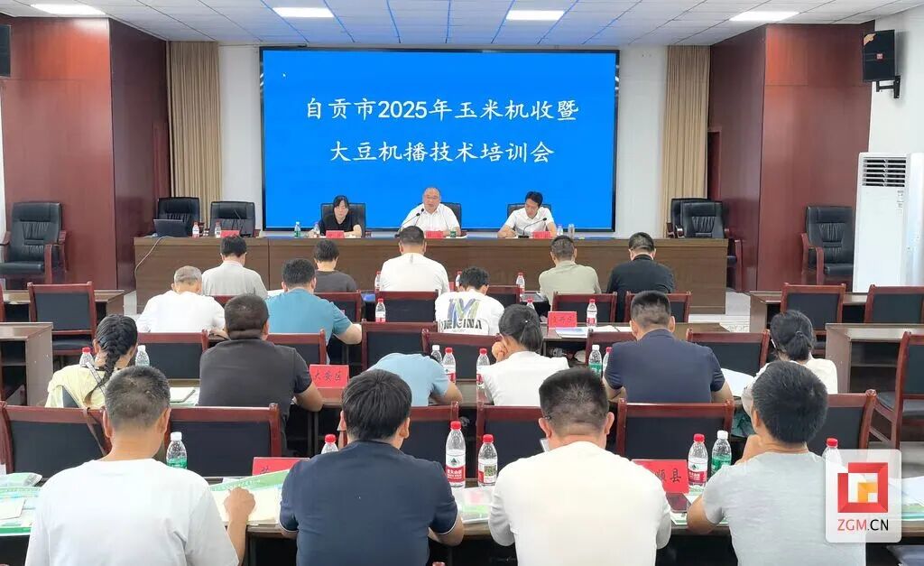 近日,2025年自贡市玉米机收暨大豆机播现场观摩培训会在贡井区桥头镇举行。会议贯彻落实粮油生产扩面增产部署,要求各区县全面提升粮油作物农机化生产水平,为保障粮食安全和实现大面积单产提升提供装备与技术支撑。