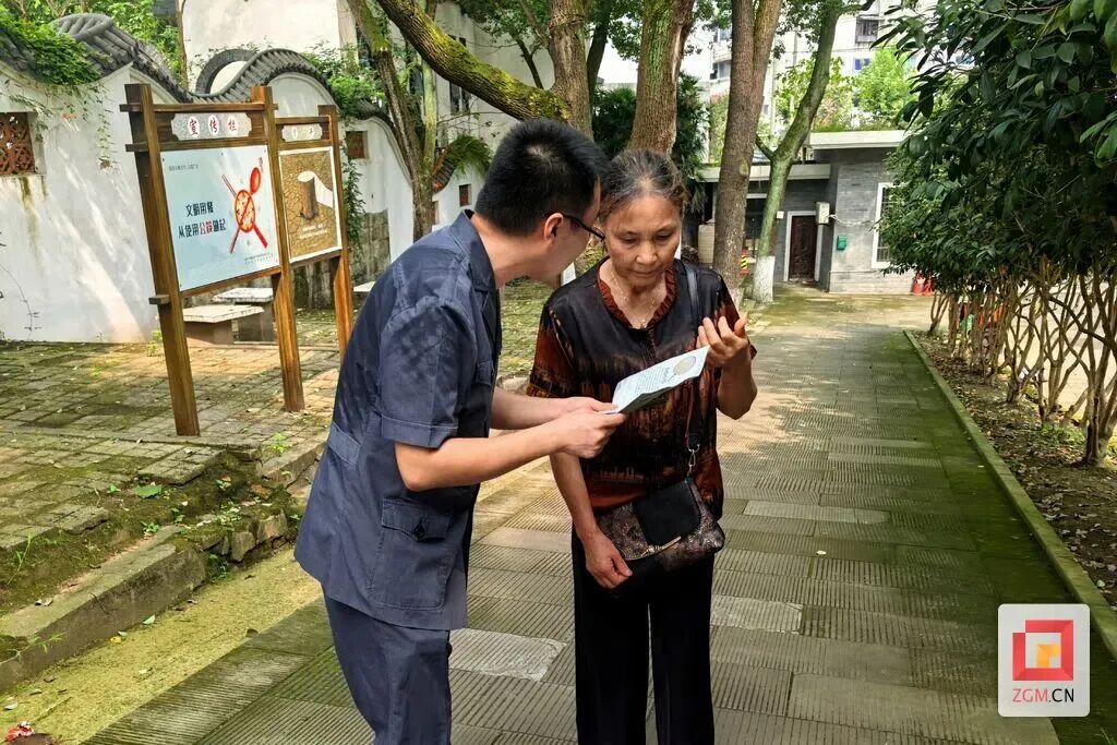8月15日是全国生态日,贡井区人民法院干警前往贡井区张伯卿公馆开展法治宣传,将生态环境保护的绿风“吹向”每个角落。