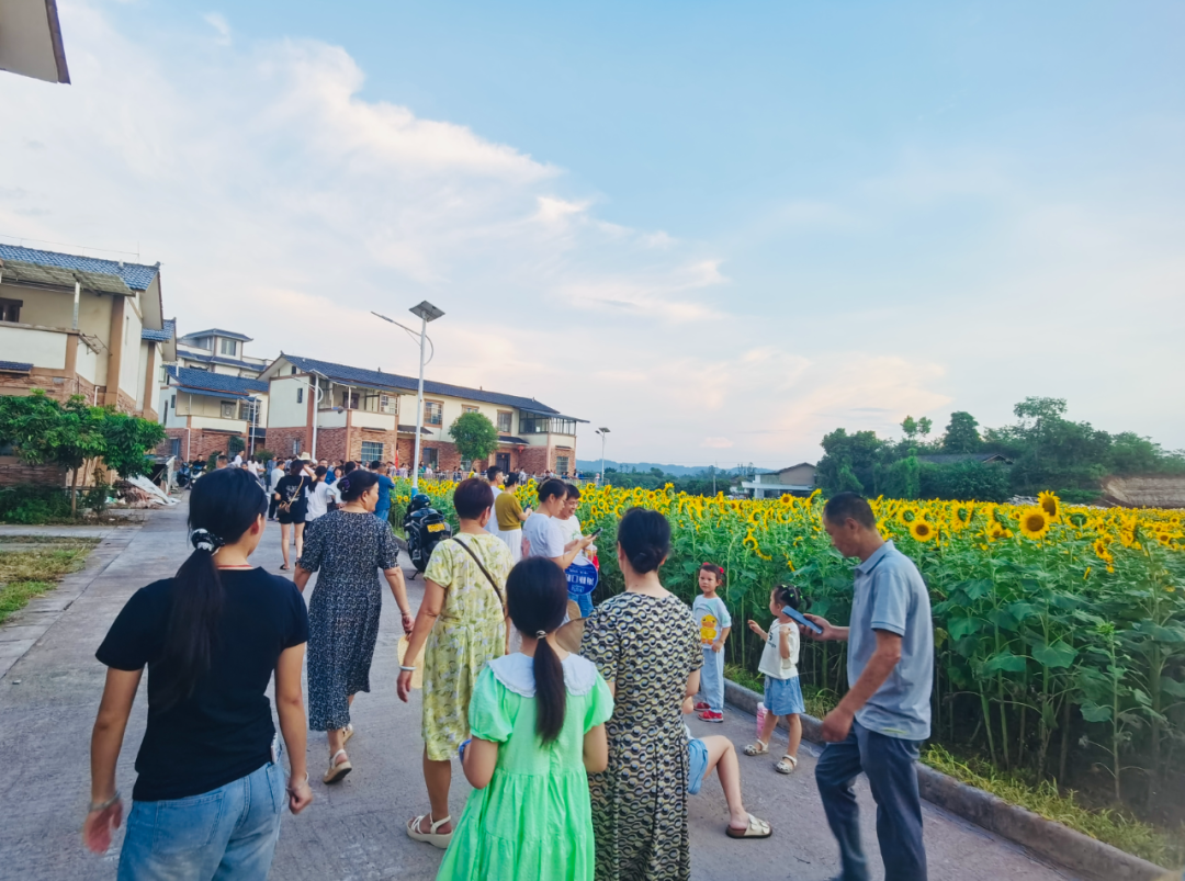 除了赏花,村里还组织游客下田体验,城里娃抱着大脸盘似的葵花,又惊又喜。带孩子前来的李女士直点头:“这一趟,比课本上讲的‘粒粒皆辛苦’生动一百倍!”