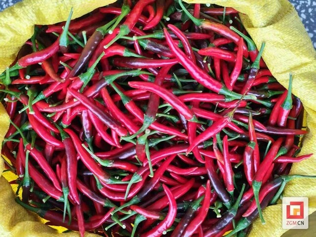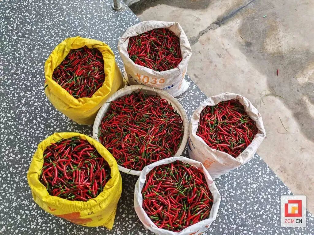 2023年起,镇党委牵线军邮直播,帮村里搭起“邮政+合作社+电商”产销桥梁。当日采摘的小米辣先过秤分级,装进透气的网袋,再由邮政冷链车当天运走——控量保鲜技术让辣椒到了消费者手里还带着鲜劲。