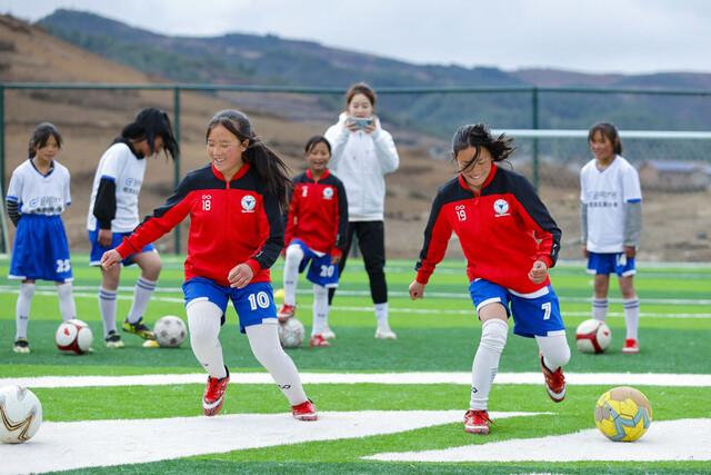 中国女足球星王霜还特意来到这个学校,和孩子们同吃同住同训练一周,那是孩子们难以忘怀的快乐时光。