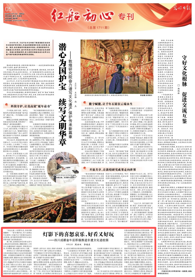 不仅让学生觉得,灯影下的喜怒哀乐好看又好玩,更通过进校园实现非遗传承规范化和体系化——在成都市金牛区,非遗文化正以一种更现代、更系统、更贴近孩子的方式,实现着真正的“非遗即日常”。