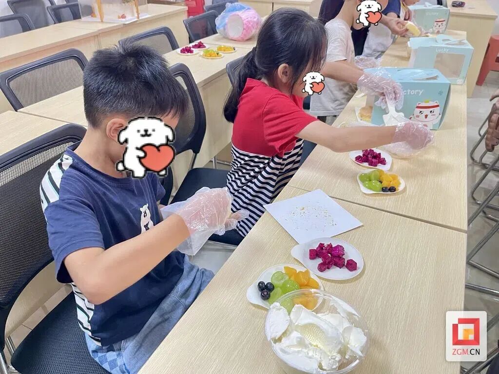 进入蛋糕制作环节,在专业烘焙师的指导下,孩子们学习抹奶油、挤裱花、摆放装饰,每一步都做得一丝不苟。志愿者全程辅助,确保每个孩子都能顺利地完成专属作品。有的孩子用糖珠拼出星星,有的用果酱画出彩虹,每一个蛋糕都凝聚着他们的奇思妙想与纯真喜悦。