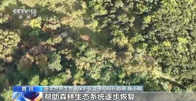 卧龙世界生物圈保护区管理局局长助理 施小刚:设立了3个监测站点,布设了近800台红外相机,实时监测野生动植物的数量、分布以及环境变化情况,以此为依据制定科学的保护策略。同时积极开展生态修复项目,帮助森林生态系统逐步恢复。