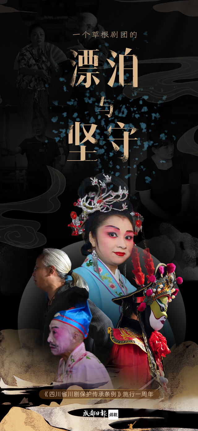 “我现在平时都在崇州的一个川剧团‘搭班’唱戏挣钱。”赵小利说得很直白,“自己一手创办的剧团,不想看着它就这么没了,但眼下第一是生存。”