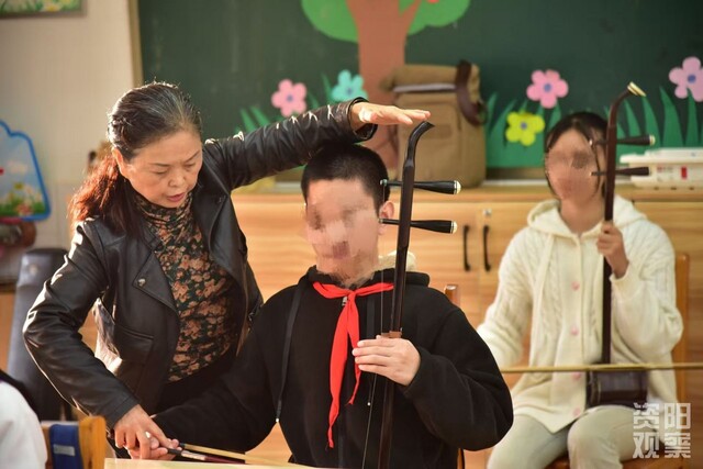 “二胡妈妈”教特殊的孩子拉琴。资料图