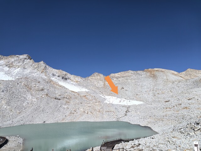 达古冰川(箭头处为达古17号冰川开展“盖被子”试验的区域)