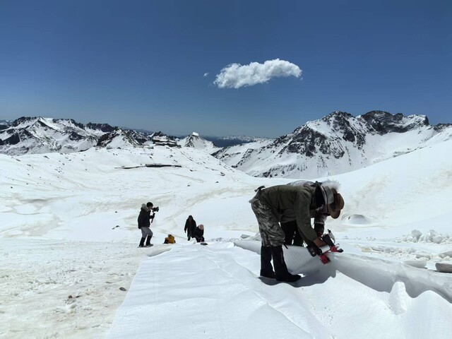 减缓冰川消融,加强保护迫在眉睫。2020年,达古冰川管理局启动全国首个大面积冰川“盖被子”实验。2020年和2021年夏季,中国科学院西北生态环境资源研究院研究员王飞腾带领团队,使用土工布对达古冰川实施保护。自2022年起,南京大学朱嘉教授的团队,利用新型的辐射制冷材料,开启达古冰川保护的“2.0时代”。到2025年,每年一次的“盖被子”实验从未间断,总面积达6000余平米。