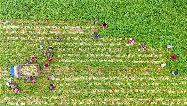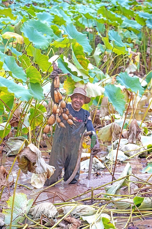 船山区河沙镇云灵村,种植户正在采收鲜藕。全媒体记者 吴奉家 摄