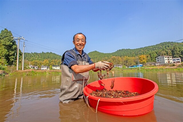 船山区河沙镇梓桐村,村民正在捕捞小龙虾。全媒体记者 吴奉家 摄