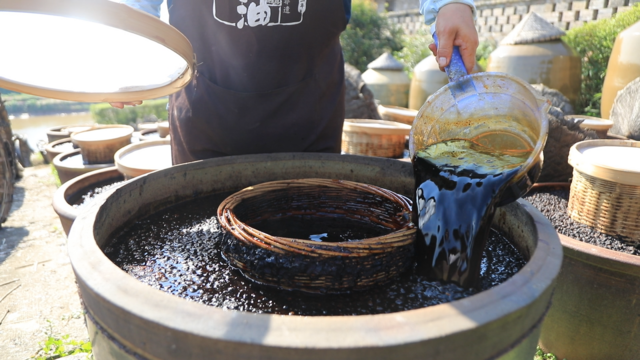 选豆子?可不是随便抓一把!合江本地的“小颗粒”黄豆,蛋白质超高,是酱油界的“隐藏王者”。先市酱油酿造技艺国家级非遗传承人陈思维告诉我:豆子选的不对,酱油就没了灵魂!从蒸煮、制曲到晒露,13道工序环环相扣,适宜的温度、湿度缺一不可,简直是一场“微生物的极限挑战”。而最酷的是——这一切,全靠自然发酵,一等就是三年以上!什么叫“慢工出细活”?来这里看看就知道了。