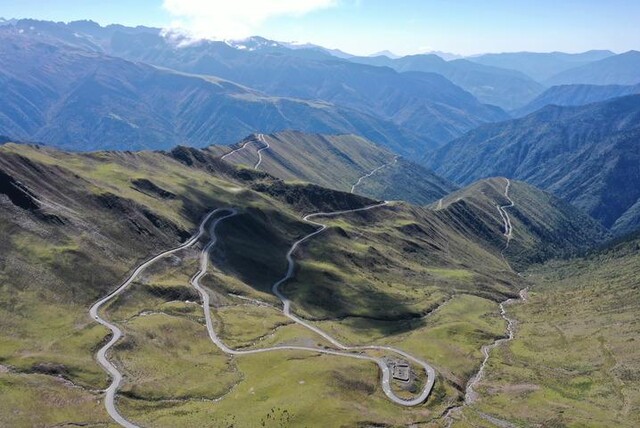 9月24日拍摄的通往夹金山垭口的路(无人机照片)。新华社记者 胥冰洁 摄
