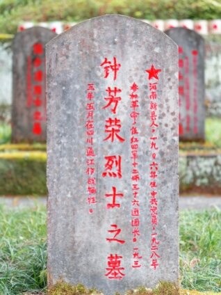 岁月虽远,但墓碑上每年描红的字迹清晰可辨:“钟芳荣,河南新县人,1906年生,中共党员,1928年参加革命,任红四军十二师三十六团团长,1933年5月在四川通江作战牺牲。”