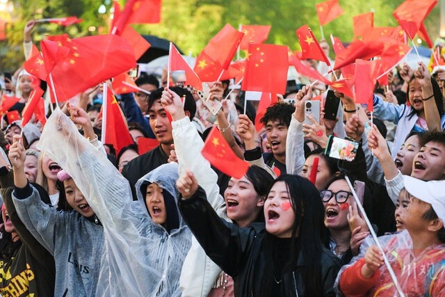 随着嘹亮的国歌奏响,升旗手稳稳扬起国旗,五星红旗在庄严的注视中缓缓升起。伴随最后一个音符落下,旗帜定格于天空中,广场瞬间掌声雷动。