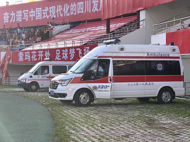 医疗保障也毫不松懈。体育场内设置了多个医疗点,医护人员随时待命,救护车停在指定位置严阵以待;此外,消防、电力、通信等部门也全员在岗,坚守在各自岗位上,全力保障赛事顺利进行。