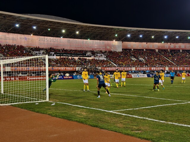 比赛进行到第25分钟,转机骤然出现——眉山队守门员扑救脱手,凉山队19号球员马小军抓住转瞬即逝的机会补射建功,攻入本届“川超”赛事凉山队首粒进球,更是瞬间点燃全场热情:看台再度掀起汹涌人浪,数十面巨幅队旗同步挥舞,“凉山雄起,凉山得啦”的呐喊声震彻云霄,凉山好医生队以1:0领先结束上半场。