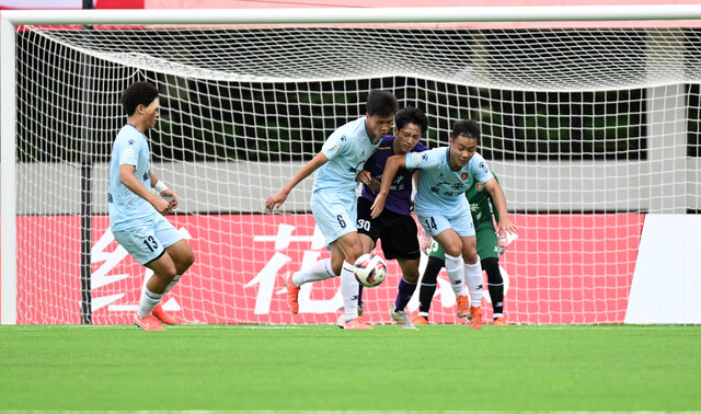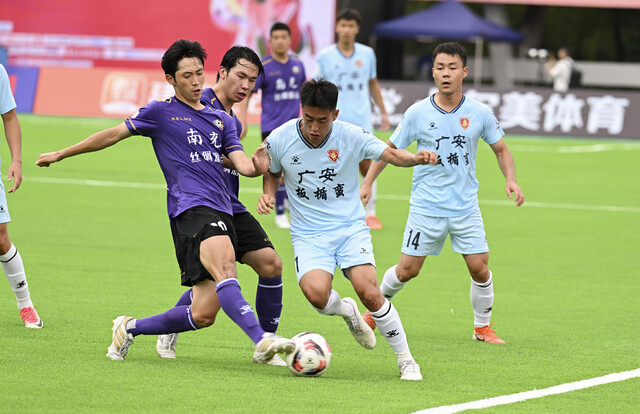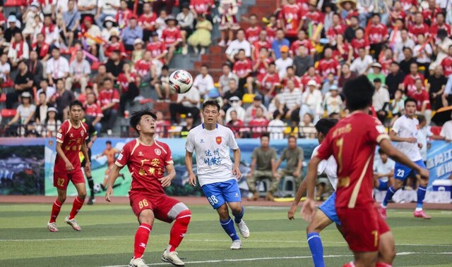 但队员们没让人失望:后卫线像钉子一样钉在场上,南充队每一次突破,都会迎来两三个人的合力围堵;中场球员频繁“倒地”,可这些摔倒从不是狼狈的踉跄——有的是为了断下直塞球,膝盖蹭破了皮也顾不上;有的是为了封堵射门,整个人扑出去,后背被草皮磨得发红;还有的被撞倒后,爬起来的第一反应不是揉伤口,而是先看球权在哪。