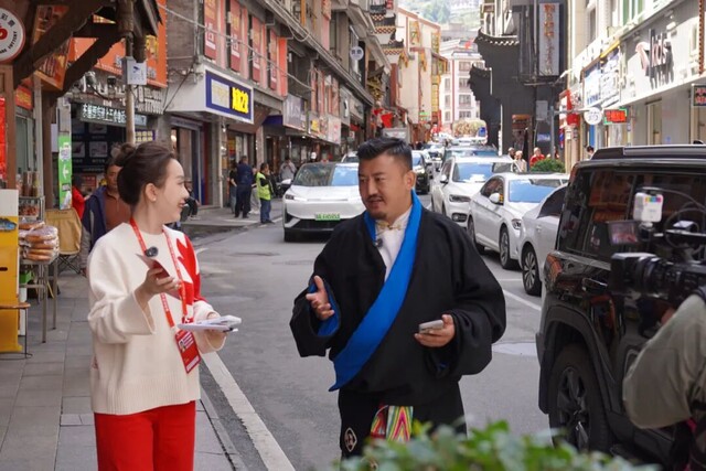 线上,传播矩阵同步发力。甘孜州传媒中心与四川观察构建全平台直播矩阵,赛前1.5小时即开启“漫游康定”沉浸式直播,甘孜州传媒中心记者甲央让布(@大汉儿)做客直播间,同四川观察主持人一道带领网友解锁“情定之城”,试穿藏装、品尝藏茶、体验锅庄、逛吃中秋特产市集……让未能亲临的观众也能“云”感受浪漫康定和魅力甘孜。据了解,本场赛事通过跨平台直播矩阵使点击量突破预期。