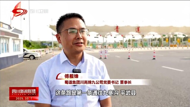 蜀道集团川高绵九公司党委书记、董事长 傅舰锋:这条路是第一条通往九寨沟、平武县以及北川县的高速公路,同时它也是解决了九寨沟县、九寨沟景区路漫漫的困难,四个小时(成都)直达九寨沟(县),是交通大通道、旅游大通道、经济大通道、抗灾抢险的安全大通道。