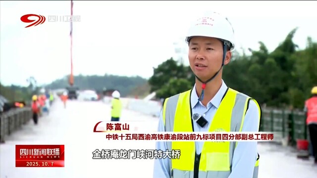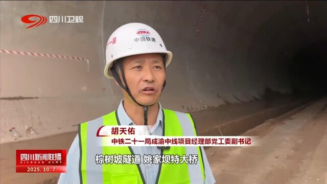 中铁二十一局成渝中线项目经理部党工委副书记 胡天佑:目前,我们正稳步推进成渝中线高铁棕树坡隧道、姚家坝特大桥、石桥沟特大桥架梁施工,整体进展顺利。全线建成后,将与西安至成都高铁、郑州至重庆高铁和成都至达州至万州高铁等多条线路连通,推动成渝地区路网结构更加完善,助力成渝地区双城经济圈建设。