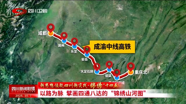时速350公里的成渝中线高铁是成渝主城间最快的高铁,途经四川成都、资阳、重庆大足、铜梁等地,通车后,成渝两地行车时间将进一步压缩至1小时内。同样连通川渝、时速350公里,途经达州、广安的西渝高铁也在稳步推进建设。