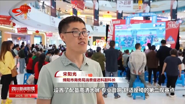 绵阳市商务局消费促进科副科长 宋阳光:我们在核心商圈和文旅地标,设置了配备高清大屏、专业音响、舒适座椅的第二观赛点,通过营造赛事+消费的场景,将赛事“流量”转化为消费“增量”,全面激发消费市场活力。