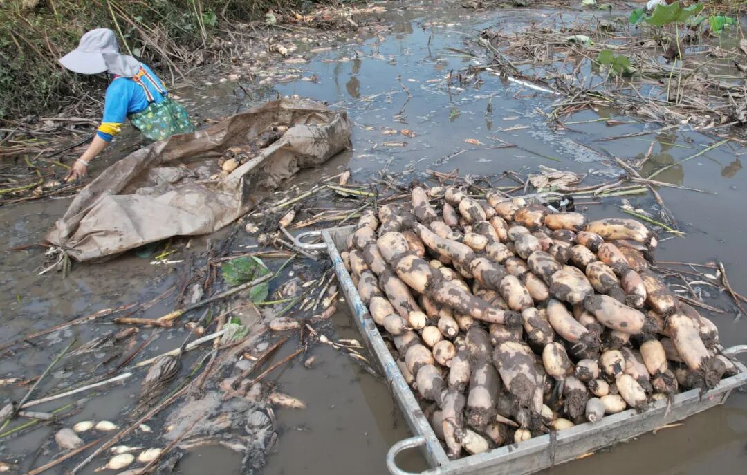 “今年风调雨顺,莲藕长势特别好,亩产起码3000斤!”藕农张大姐抹了把汗,举起刚挖出的莲藕,脸上漾开喜悦。她手中的莲藕洁白饱满,一节足有成年人小臂长,还沾着湿润的泥土,清香扑鼻。