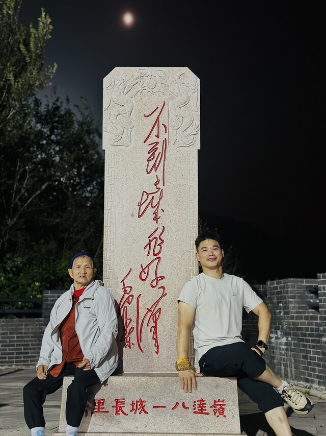 谭卫民背着母亲夜爬长城。