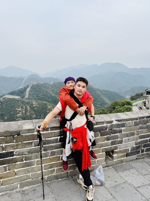徒步8公里,背着母亲爬上长城