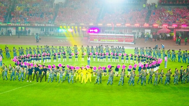 赛前,文艺演出已为大战渲染出别样温情。在搏击操展现力量之美后,来自自贡市育才学校的84名小学生以纯净童声合唱《同一首歌》,“鲜花曾告诉我你怎样走过……”的旋律响彻球场,瞬间柔化了比赛的硝烟味,让两地球迷与球队在心手相连的共鸣中,迎接这场绿茵对决。