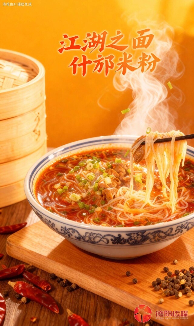 什邡米粉汤底醇厚,米粉爽滑,一勺红油、几粒葱花,勾勒出一天最初的温暖。它不争“面”之名,却得了“面”之魂,吃的是烟火,品的是人生。