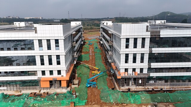 走进这个总投资49亿元的产业园区,仿佛能听见“进度条”飞速加载的声音——2-6号楼装饰装修已完成97%,即将惊艳亮相;1号楼进度过半,完成50%;9-11号楼紧随其后,完成40%;地下管网完成80%,如同为这片79.8万平方米的土地预先“打通了血脉”。