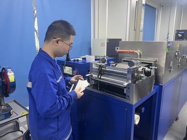 采访的首站,是公司的新材料研究所。洁净的实验室里,研究人员正全神贯注地进行锂电池正极材料的涂布实验模拟测试。“正极材料是锂电池的‘心脏’,其性能直接决定电池的能量密度、寿命和安全。”现场技术人员向记者介绍,这里的每一次测试、每一次参数调整,都关乎未来产品的市场竞争力。为了抢占技术制高点,企业聘任了新能源领域知名专家胡国荣教授为首席科学家,并整建制引进其研发团队,持续推动磷酸铁锂等新能源材料产品的研发迭代和品质提升,目标直指优质、高端、领先的新能源材料产品。