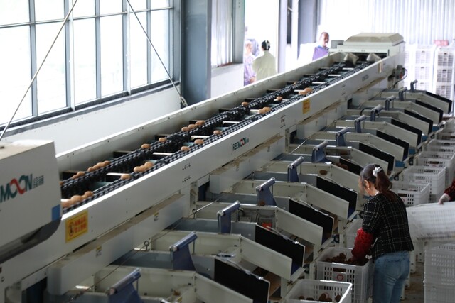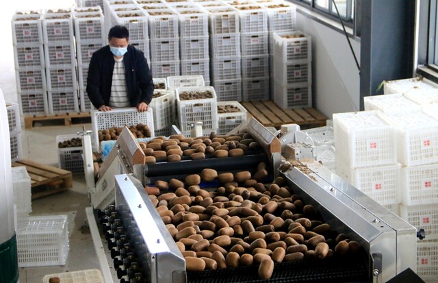 “刚从果园运回来的果子,一部分先送进冷库预冷,一部分通过分选机按果径、品相分类,最后检测农药残留,合格的才能包装发货。”呐喊村党支部书记郭登举介绍,村里已建起14个冷库,能存储1400余吨猕猴桃,直接延长销售时间达5个月左右。