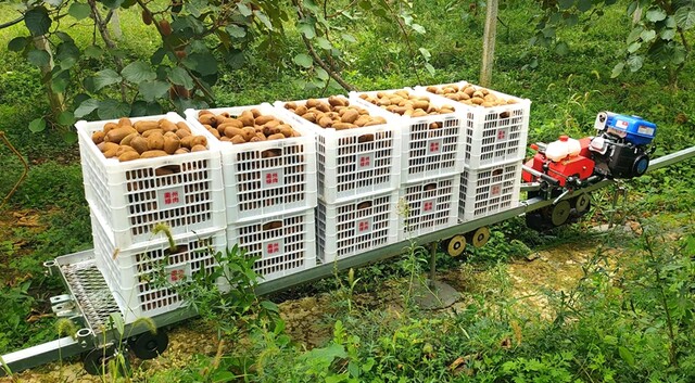 “‘小火车’能爬陡坡、随时停,操作简单,省时省力。”李守森介绍,以前运猕猴桃、有机肥,都是肩挑背扛,来回一趟最少要用半个小时,一次还只能背几十斤。现在有了“小火车”,哪怕从果园最偏远的地方运到公路边,也只需几分钟,一次还能运800多斤。