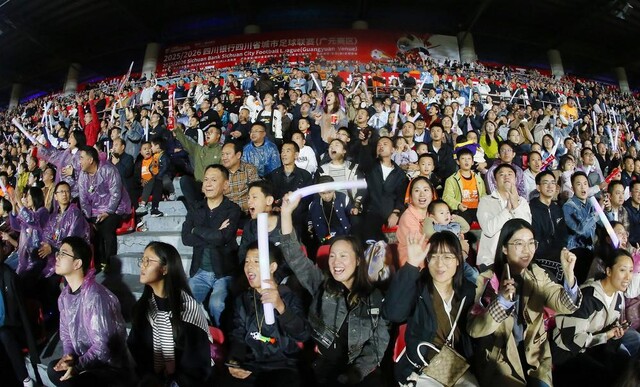 看台上,70名头戴印有“赛场逐梦 广元出众”“广元足球 激情不休”等口号发箍的“媚娘宝贝”充满青春活力,跃动起舞间,向大众展示广元特产和名胜古迹,与强劲给力的球迷共同为球员提供激情与动力。