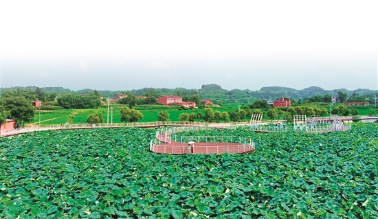 航拍水池村的荷塘。