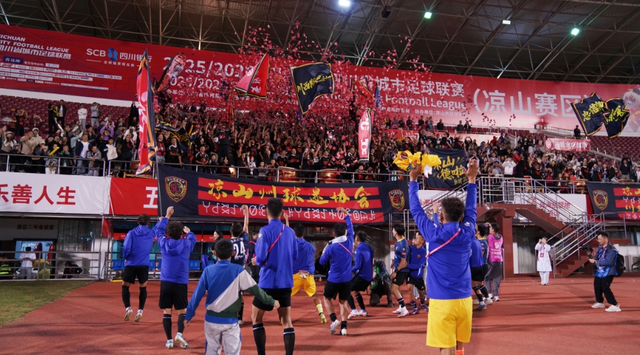 当比赛结束那一刻,阿尔伍加与队友们冲向看台,与从凉山各县(市)远道而来的乡亲们击掌、拥抱。球场的聚光灯映照着看台上“凉山雄起”的标语,也映照着每一张黝黑脸庞上洋溢的自豪。