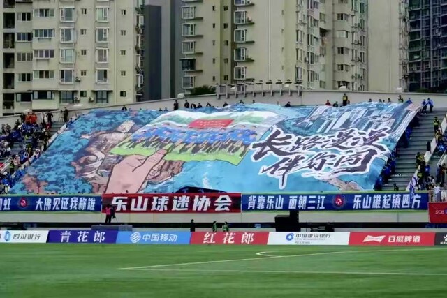 巨幅TIFO写着“长路漫漫伴你闯”