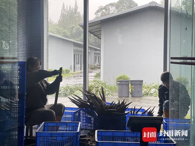 因为老年大熊猫普遍牙口不好,剪竹叶、剥竹笋是饲养员们的每日必修课