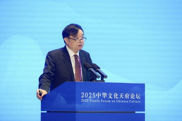 在10月30日举行的2025中华文化天府论坛上,北京大学教授、三星堆研究院学术院长孙华介绍了三星堆—金沙遗址的文化特点和价值意义。