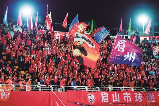 看台上,球迷挥舞旗帜呐喊,致敬的是球员的汗水,更是永不言弃的信念。这种“输球不输阵”的气度,恰是东坡“一蓑烟雨任平生”的风骨穿越千年,在当代眉山人身上留下的精神印记。