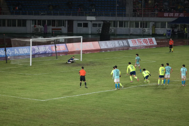 11月2日晚,“川超”第七轮攀枝花主场迎战乐山,攀枝花攀钢钢铁勇士队在雨中奔跑、拼抢、防守,最终以1:1战平对手。