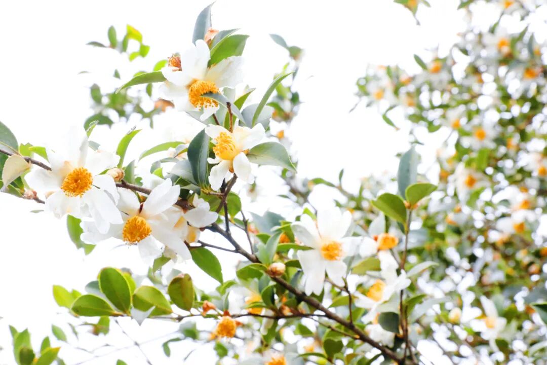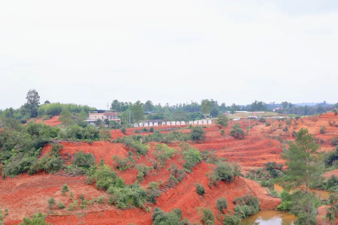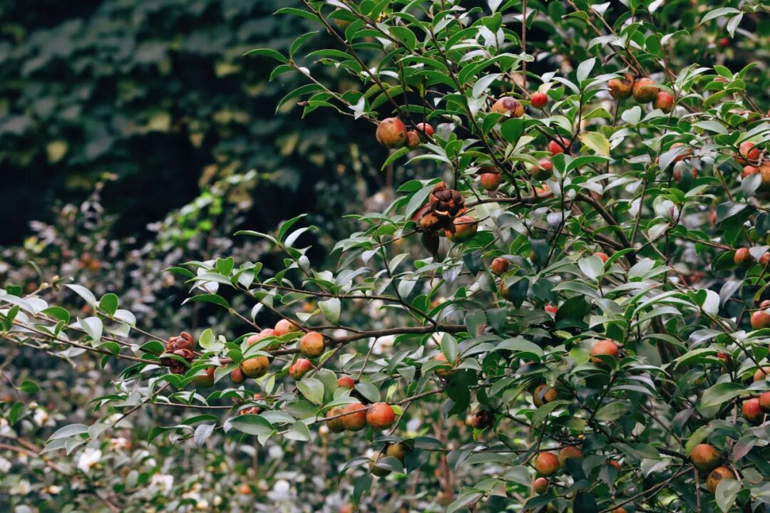 站在山坡上放眼望去,层层叠叠的油茶林铺展到天际,厚实的叶片在阳光下泛着油亮的光泽,青中透红的油茶果压弯了枝头。村民们穿行在林间忙活,笑声和着鸟叫,为这片绿色的海洋增添了无限活力。