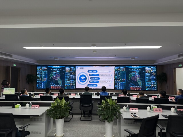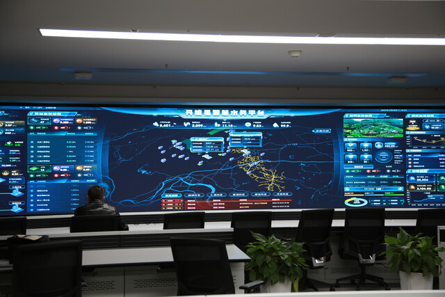 工作人员在县智慧治理中心对智慧水务平台进行运行管理操作。
