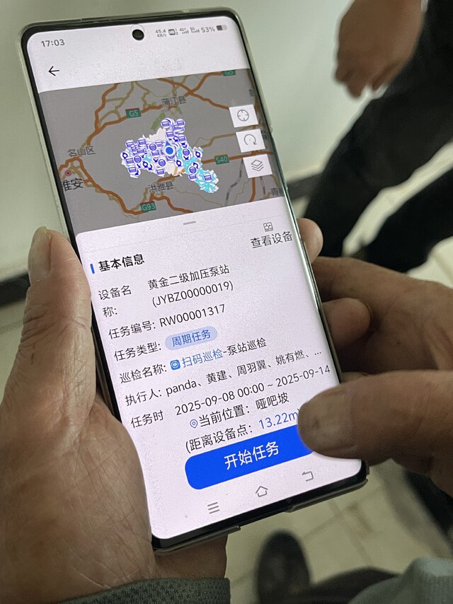 村级管理员使用手机app进行线上巡检。